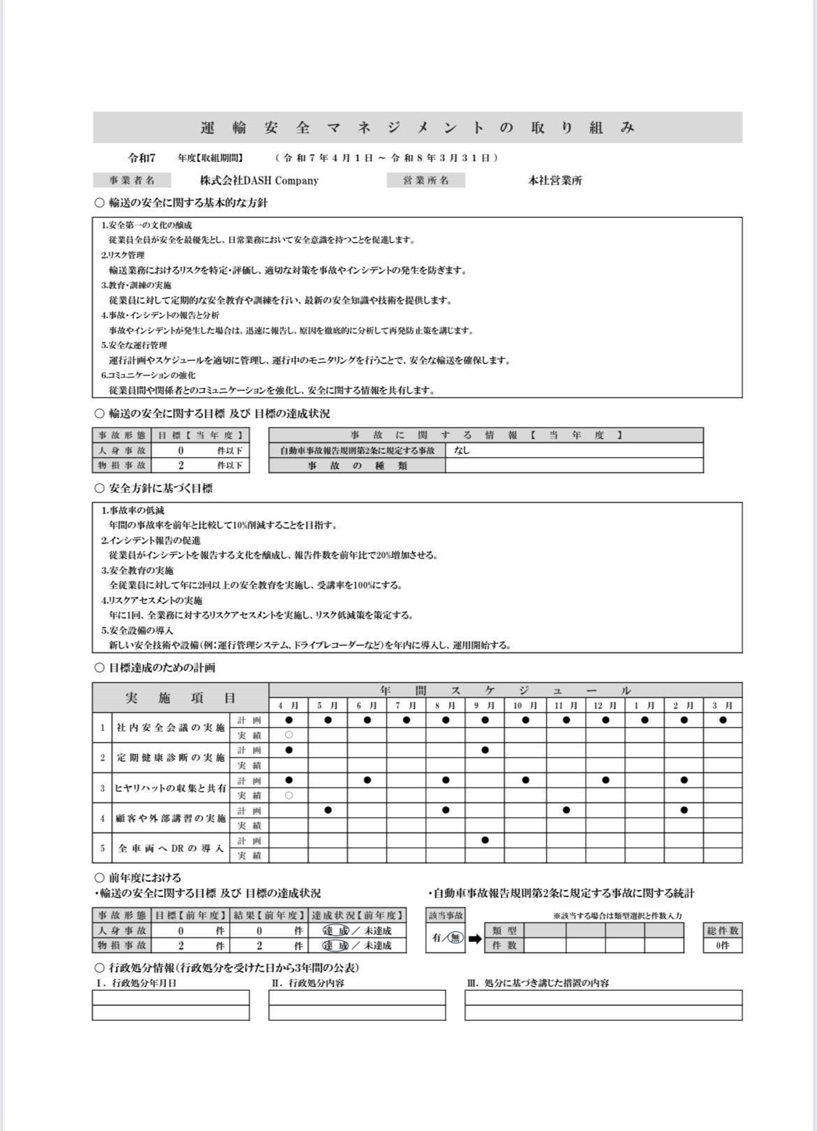 新しい安全技術や設備(例:運行管理システム、ドライブレコーダーなど)を年内に導入し、運用開始する。